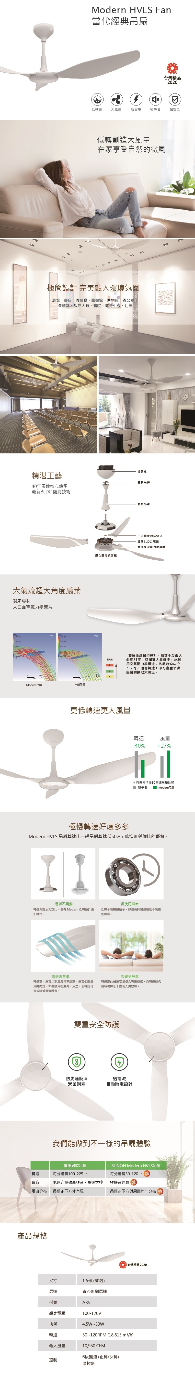 ✔極低轉速 ➤ 比一般吊扇轉速低40%,運轉穩定不晃動